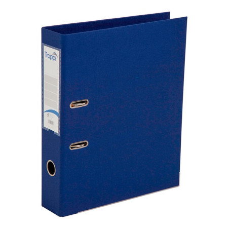 Pasta legajadora AZ en cartón recubierto en polipropileno de 2.5mm de grosor, base reforzada en aluminio, rodos que aseguran las tapas, evitando que se abran en el momento de archivar. Herraje removible de 8cm, bolsillo en acetato para marcación o identificación en el lomo del AZ, anillo metálico en el lomo para fácil agarre.