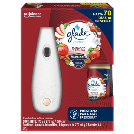 AMBIENTADOR GLADE APARATO + REPUESTO MANZANA CANELA 270 ML AUTOMATICO